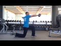 este ejercicio es una variante del lunge (lagartija) clásico, dado que partimos de una posición de inicio frontal para terminar con un lunge lateral. Utilizar la mancuerna producirá una contracción del core de forma isométrica mientras que a nivel del miembro superior hay un trabajo del deltoides que convertirá este ejercicio en un ejercicio general o multiarticular. Es importante al realizar los giros acompañarlos con las rodillas de forma que no las forcemos en la ejecución final del movimiento.